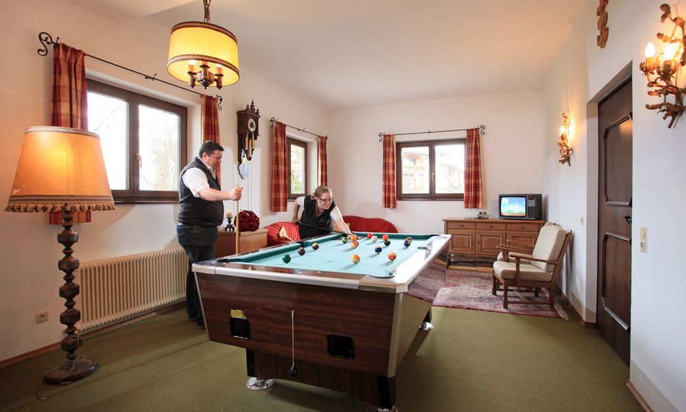 Garten mit großen Kinderspielplatz, Aufenthaltsraum mit Billard, TV und div. Spielen